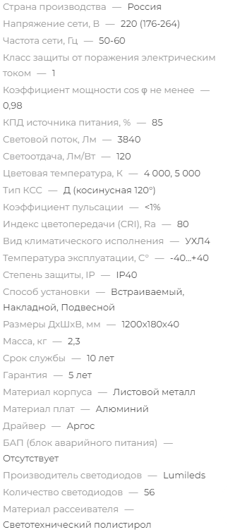 Опционально может быть оснащен блоком аварийного питания, либо источником питания, поддерживающего различные протоколы диммирования.