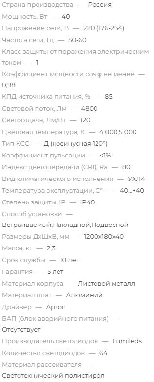 Опционально может быть оснащен блоком аварийного питания, либо источником питания, поддерживающего различные протоколы диммирования.