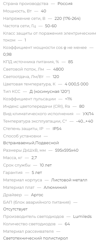 Опционально может быть оснащен блоком аварийного питания, либо источником питания, поддерживающего различные протоколы диммирования.