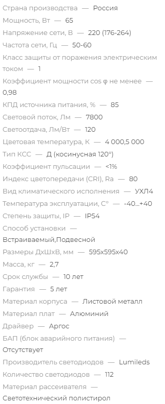 Опционально может быть оснащен блоком аварийного питания, либо источником питания, поддерживающего различные протоколы диммирования.